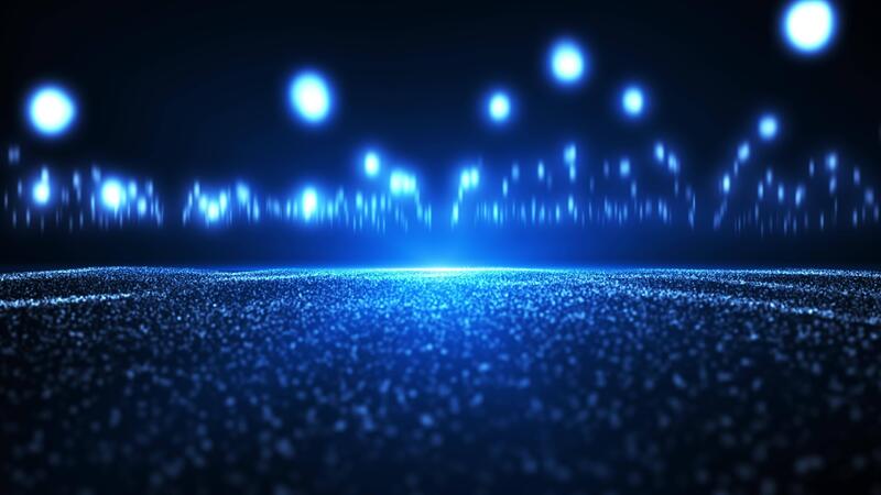 Abstract glowing wave of particles and dots moving on blue background, flying glowing field of particles, big data visualization, futuristic and digital background, 3D, 4K, seamless loop Pro Video