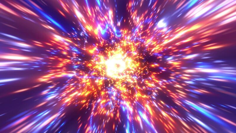 Abstract energetic background with bright rays of light and bright glowing moving particles of dust and light. seamless loop. Hyperspace jump through the stars into space. Pro Video