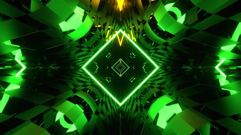 Green and Yellow Dimensional Tunnel with Neon and Mirror Pattern Background VJ Loop in 4K Free Video