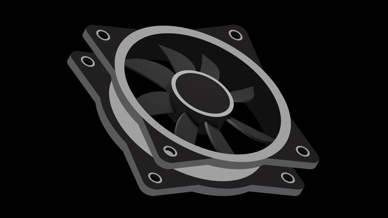 Isometric computer fan animation. Computer fan cooler. Isometric of PC case fan. Computer hardware components. Transparent background Pro Video