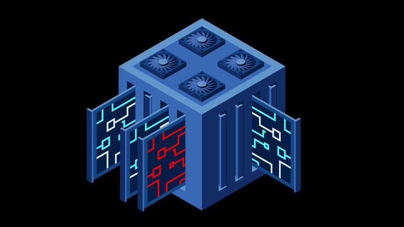 Isometric futuristic server animation. Isometric database. Abstract blockchain. Computer storage. Cloud storage. Transparent background with alpha channel Pro Video