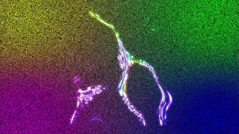 Dynamic Abstract AnimationEvolving Glowing Shapes, Particles, and Text on a Vibrant Rainbow Gradient Background Free Video