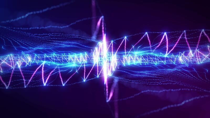 Abstract digital dynamic waves of glowing particles with light movement background, data flow, cyber technology. Pro Video
