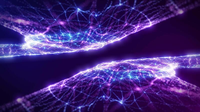 Abstract purple digital dynamic particle waves with motion light background, data flow, cyber technology. 3d rendering. Seamless loop 14k. intro Pro Video
