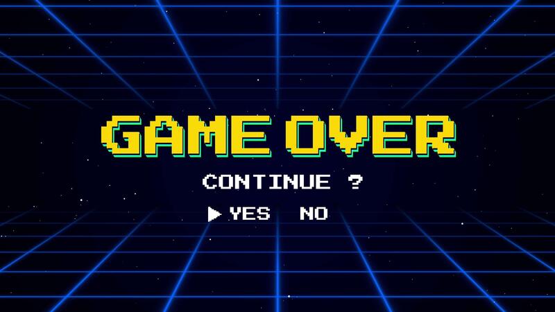 Retro Game Over Screen Animation, Pixel Art Arcade Style with Continue Option Pro Video