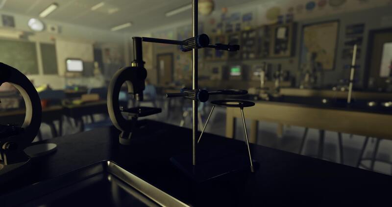 CGI Microscope setup in a dimly lit classroom for science experiments Pro Video