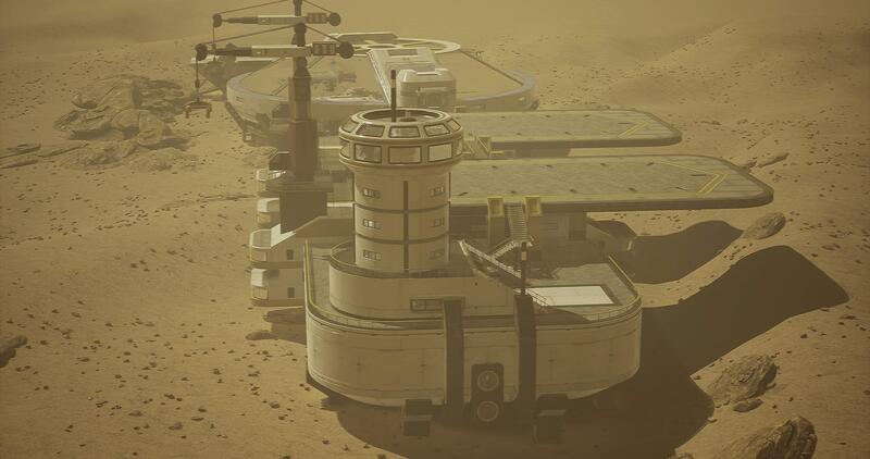 CGI Futuristic desert lab featuring cutting edge architecture and tech Pro Video