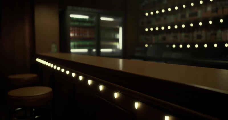 CGI Cozy bar setting with soft lighting and empty stools in quiet atmosphere Pro Video