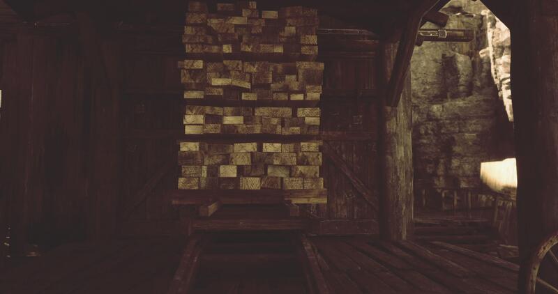 CGI Weathered wooden structure showcasing stacks of logs in a rustic setting Pro Video