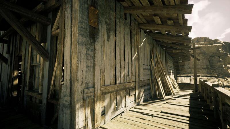 CGI Rustic wooden structure in a deserted location with weathered planks and beams Pro Video