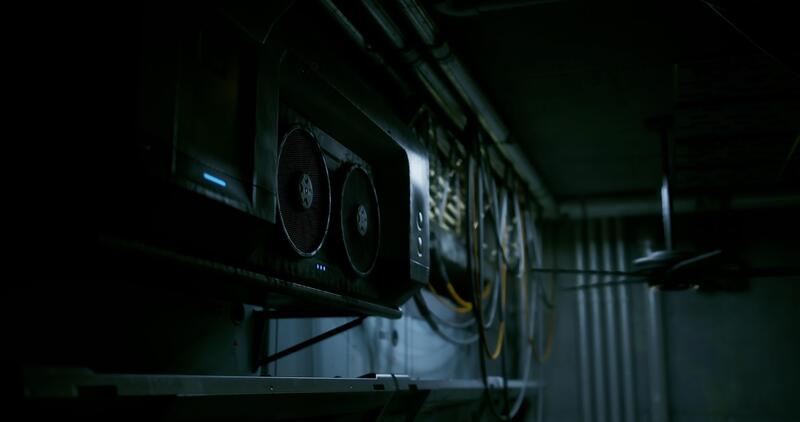 CGI Advanced computer server setup in dimly lit technology space Pro Video