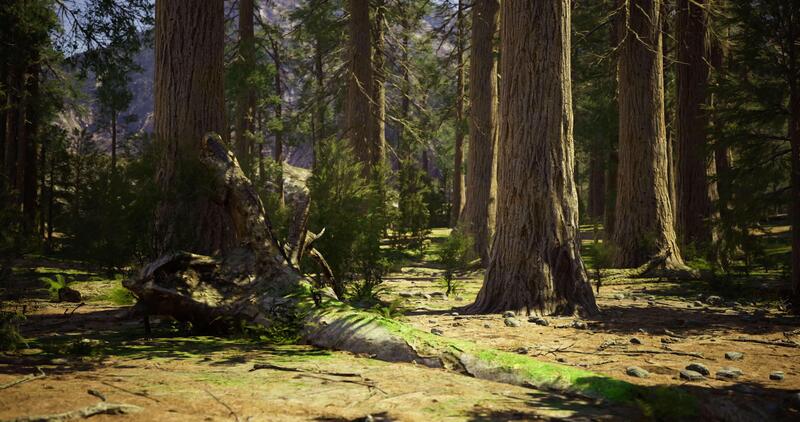 CGI Lush forest with tall trees and fallen log in a serene natural setting Pro Video