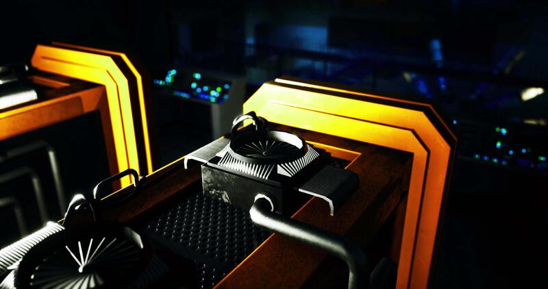 CGI Advanced technology in a dark laboratory with illuminated devices Pro Video