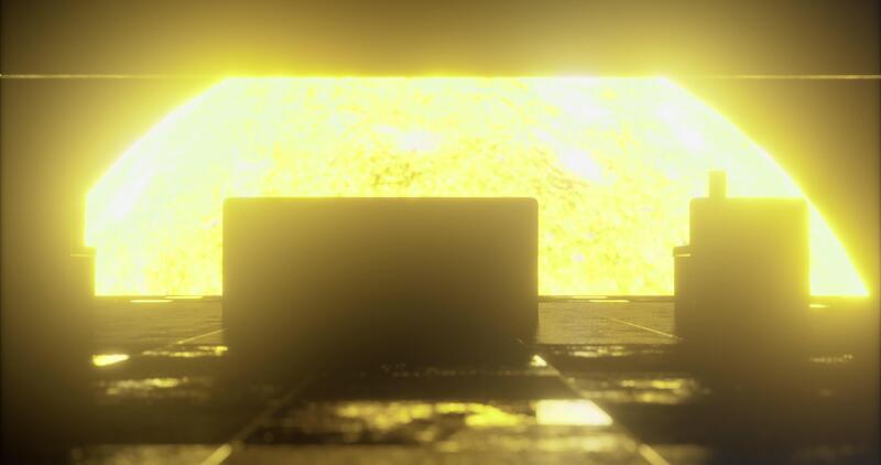 CGI Exploring the glowing surface of a distant star from a spacecraft view Pro Video