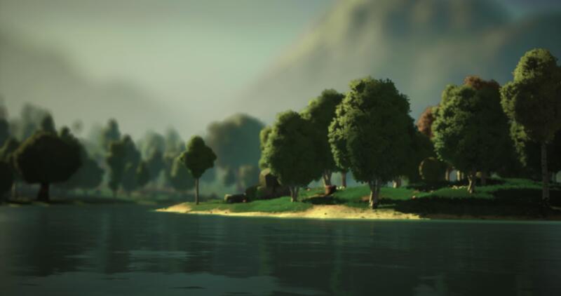CGI Scenic lakeside view with trees and mountains in the background during daylight Pro Video