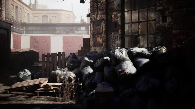 CGI Abandoned factory in decay with collapsing structures and debris Pro Video