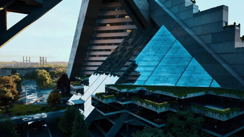 CGI Modern design with angular shapes and a lively landscape Pro Video