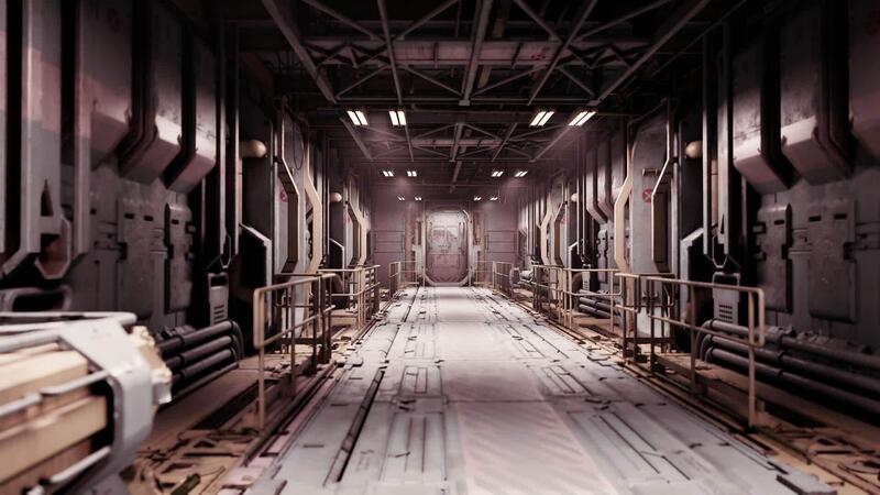 CGI Futuristic corridor with metallic walls and a bright exit in a sci fi setting Pro Video
