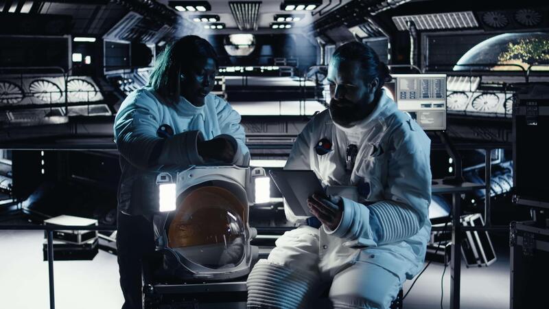Researchers fly together in starship exploring Mars, expanding human presence in space Cosmonauts ensuring operational readiness before landing on red planet supporting future colonization, camera A Pro Video