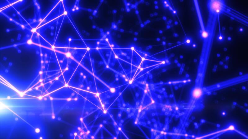 Futuristic abstract neural web with glowing pink and blue nodes connected in a tech-inspired network pattern Free Video