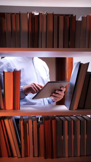 A person is using a tablet computer in a library Pro Video