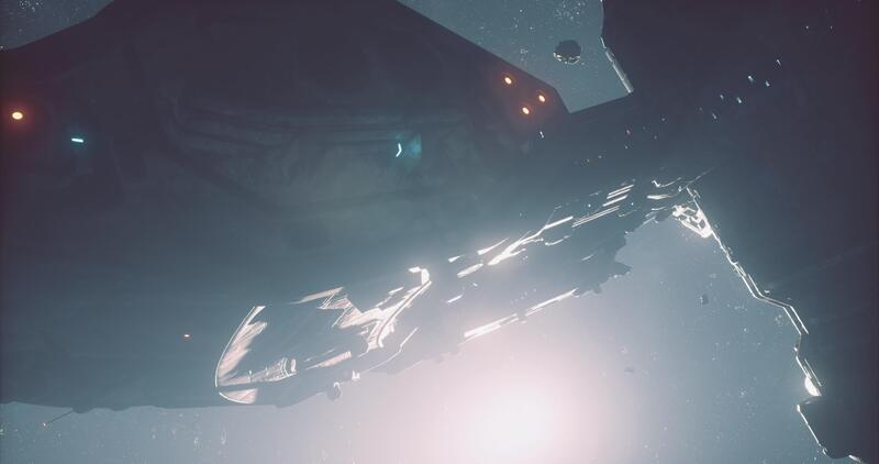 CGI Spaceship exploring an alien world with distant stars in the background Pro Video