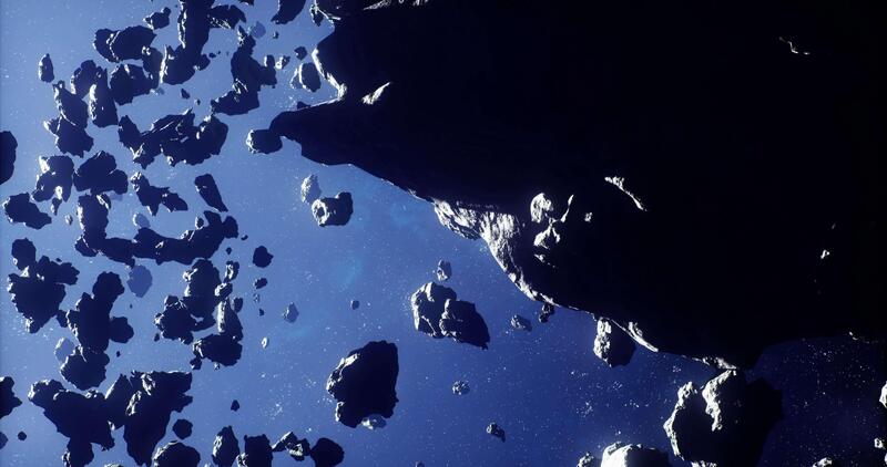 CGI Asteroids drift through space in a dynamic celestial environment Pro Video