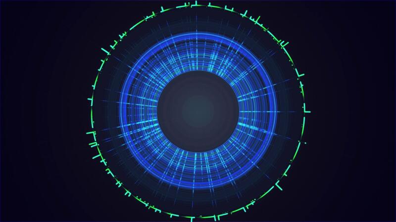 Abstract Futuristic Digital Circle Visualization with Blue and Green Tech Elements - Dynamic Data Display Background Free Video