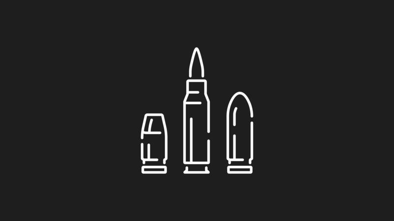 Caliber white line animation. Bullets line animation. Caliber icon animation showcasing three bullet cartridge components with dynamic motion, ideal for bulletproof vests. Pro Video