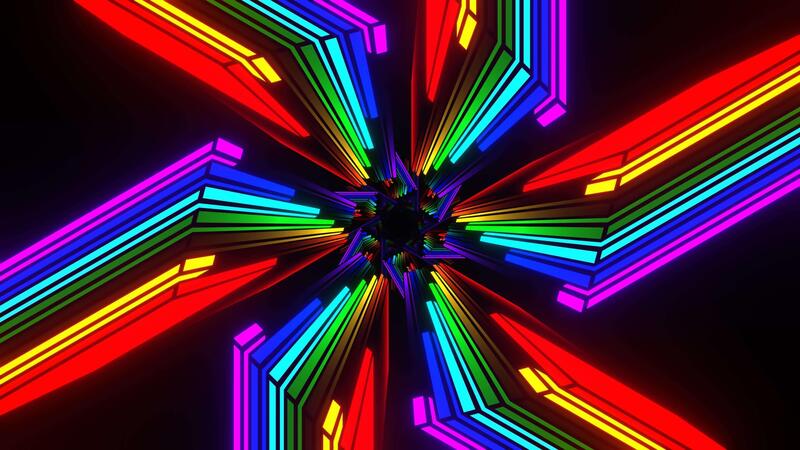 Multicolor Hexagonal Neon Lines Tunnel Background VJ Loop in 4K Pro Video