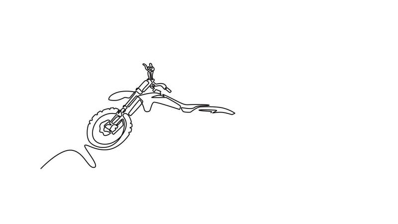 Animated self drawing continuous line draw fearless professional motocross rider skillfully executes an extreme maneuver move, showcasing remarkable balance and daring. Full length one line animation Pro Video