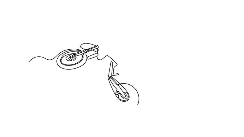 Self drawing animation single line draw biker acrobatic jump at the trial show executes an extreme maneuver, showcasing remarkable balance and daring expertise. Continuous line. Full length animated Pro Video