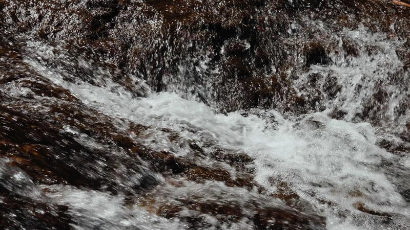 Flowing water cascading over rocky surfaces, creating mesmerizing whitewater patterns in pristine mountain wilderness landscape. Cascading water flowing over rocky terrain, generating patterns Pro Video