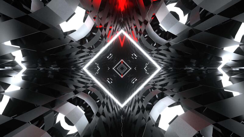 Red and White Dimensional Tunnel with Neon and Mirror Pattern Background VJ Loop in 4K Free Video