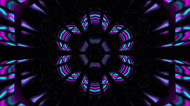 Cyan and Pink Hexagonal Neon Mirrored Tunnel Background VJ Loop in 4K Free Video