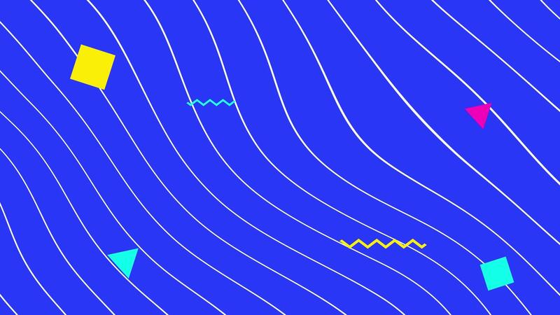 Colorful animated shapes move across a blue background creating dynamic patterns Free Video