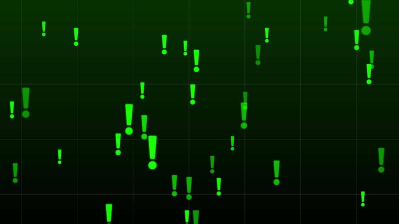 Animated Abstract Digital Background with Dynamic Green Exclamation Marks and Dots on a Grid Pattern, Representing Alerts or System Activity Free Video