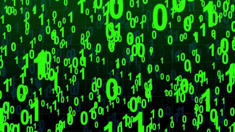Abstract Digital Background with Falling Green Binary Code Data Stream on Grid - Technology, Computing, and Cyberspace Concept, Cascading green binary code Free Video