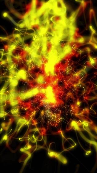 Abstract glowing red and yellow fibre optic threads twist into a dynamic digital network structure Free Video