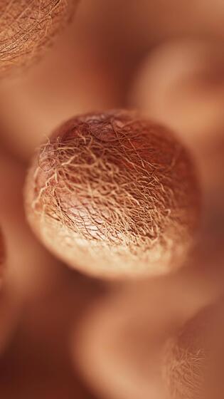 Animation of a group of coconuts. Many coconuts slowly rotate in the background in space. Vertical composition. Defocus Pro Video