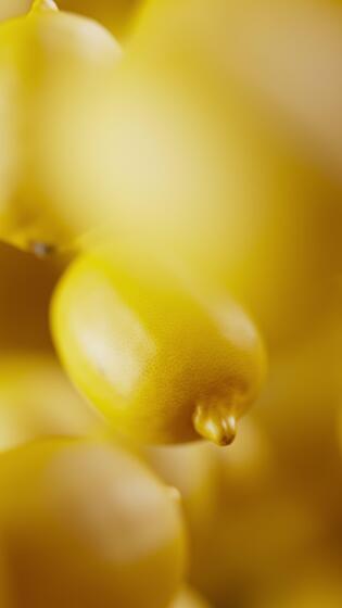 Looping animation of a group of lemons. Many lemons slowly rotate in the background in space. Vertical composition. Defocus. Close-up. Cycle. Pro Video