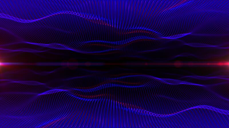 Two blue waves on a background of particles. Blue balls in the shape of waves. Waves with blue and blue circles. Abstract gradient particle waves seamlessly flowing with soft light and bokeh. looping Pro Video
