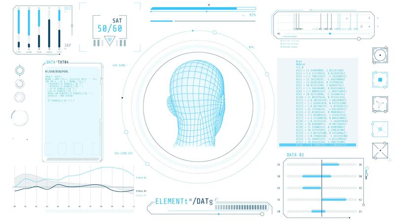 Animated high-tech display with person identification and data processing Pro Video