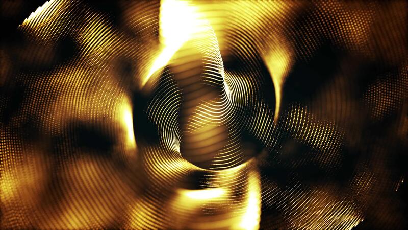 Abstract gold particles and waves forming dynamic circular patterns on a dark background. Futuristic digital motion, luxury golden texture, ideal for technology, finance, or elegant design projects Pro Video