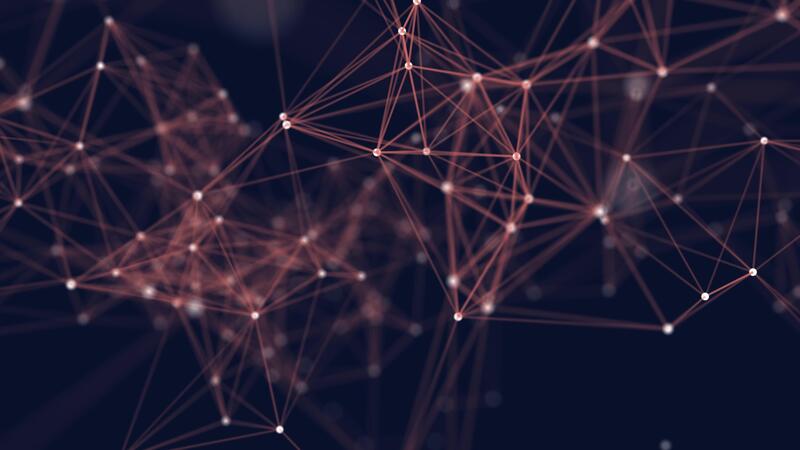 animated pink abstract fractal plexus pattern on blue background loop, technology internet network connection with polygons, dots and lines in the slow motion Pro Video