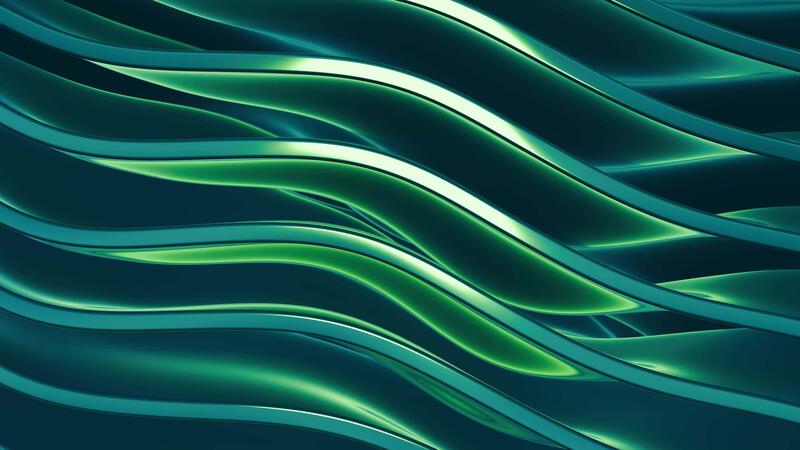 Seamless loop background with blue metallic waves and green light with smooth realistic reflections. Elegant screensaver for abstract art and modern technology. Computer graphics, 3D render, 4K 60fps Pro Video