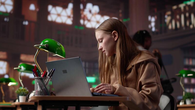 Intellectual college student researching public relations and its societal impact, utilizing laptop and educational materials from the library archives to complete a class assignment. Camera A. Pro Video