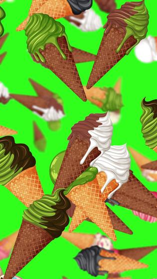 Ice cream cones cascade against a bright green backdrop. Playful, colorful, and dynamic animation with a cheerful mood Pro Video