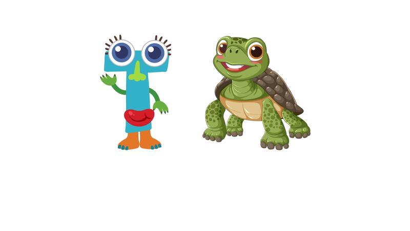 Colorful animation introducing the letter T with a friendly turtle character. Simple design with playful movement and educational focus Pro Video