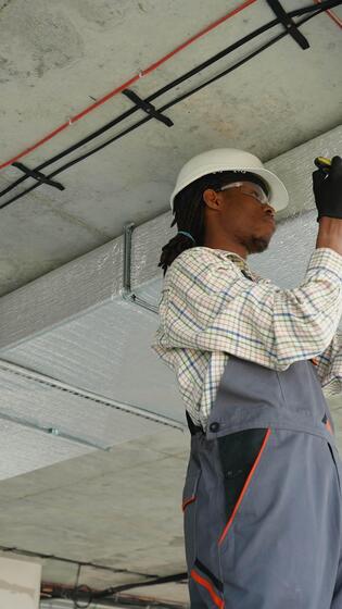 Technician installing air conditioning system in building Pro Video